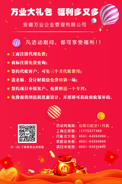 安徽萬業(yè)企業(yè)管理有限公司成立于2006年,從事企業(yè)服務(wù)十余年。公司主營業(yè)務(wù):資質(zhì)新報(bào)、升級、增項(xiàng)、公司注冊、財(cái)稅代賬、稅務(wù)籌劃、項(xiàng)目申報(bào)等業(yè)務(wù)。且已經(jīng)成功辦理上萬家公司注冊、資質(zhì)申辦業(yè)務(wù)及財(cái)稅代賬客戶上千家。