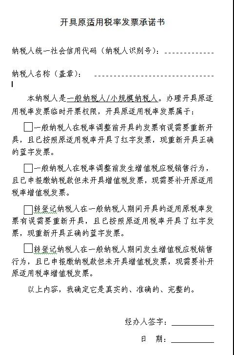 開具原適用稅率發(fā)票承諾書